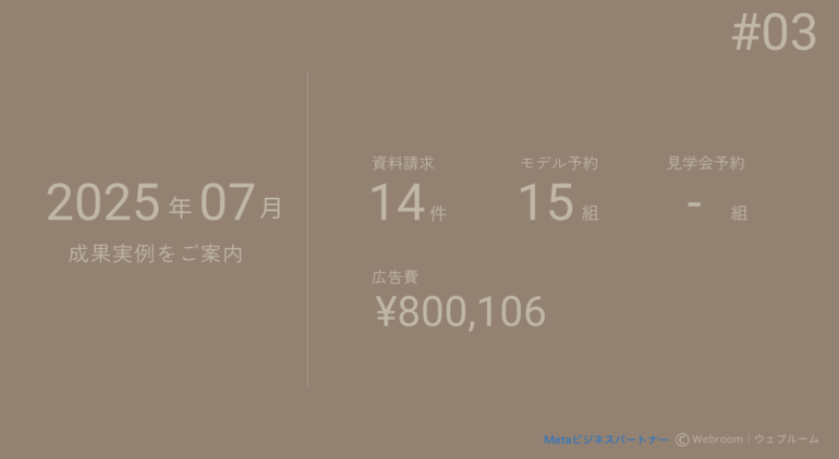 2025年7月、Meta広告で予約と資料請求が半々である住宅会社様の実例になります。